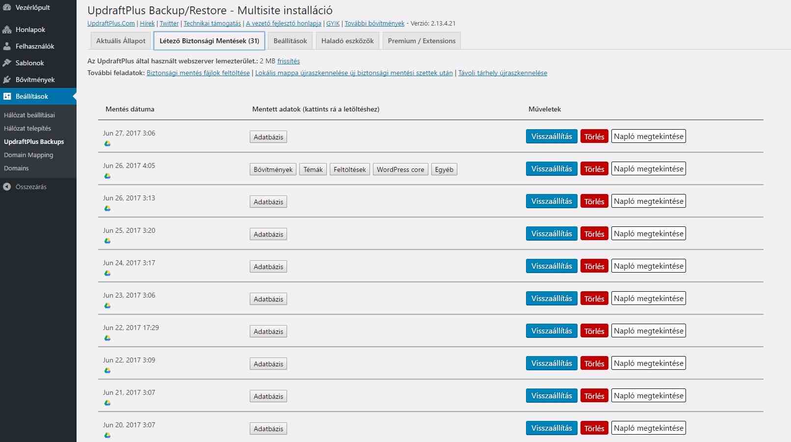 Ezt a bővítményt több mint két tucat honlapnál is alkalmazom jelenleg. Mind helyi, mind felhő alapú (Google Drive) külső helyre is folyamatosan, rendszeres időközönként készítek mentéseket vele. Az UpdraftPlus bővítménye más backup pluginekhez képest jobban bánik a szerver memóriájával, főleg ha egy közepes (1000 fotó, több száz bejegyzés fölött) honlapról kell automatizáltan mentést készíteni. Így ez a bővítmény sok hazai kisebb tárhely szolgáltatónál is képes biztosan elfutni. Elmúlt 1 éves tapasztalatom, hogy a bővítményt folyamatosan támogatják, hiba esetén gyorsan készül a javítás.
