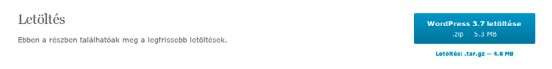 Az oldalon keressük meg a WordPress X.Y.Z letöltése gombot (ahol az X.Y.Z a WordPress aktuális verziószámát jelöli, például 3.7), majd kattintsunk rá. A kattintás után letöltődik a számítógépünkre a WordPress tartalomkezelő rendszer legfrissebb kiadása egy .ZIP formátumú csomag formájában. Arra is lehetőségünk van, hogy ne .ZIP, hanem a Linuxos rendszereken elterjedt tar. gz formátumban töltsük le a csomagot. Ehhez kattintsunk a gomb alatt Letöltés: .tar.gz hivatkozásra.