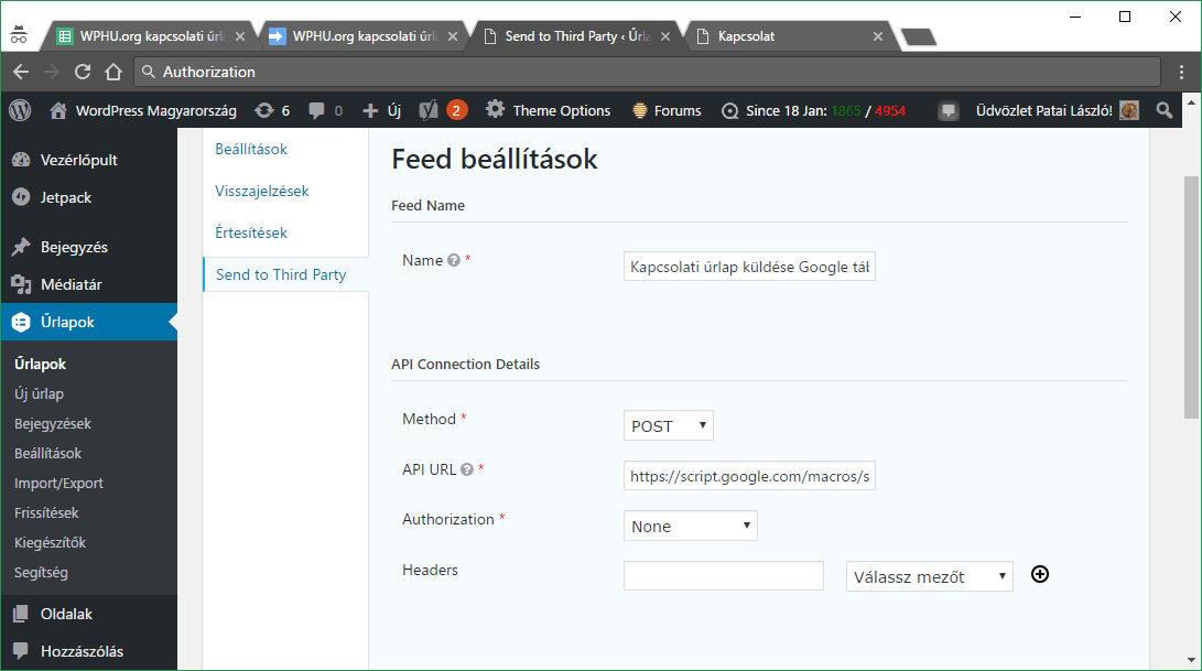 Szerencsére találtam egy ingyenes bővítményt, ami segítségünkre lesz az adatok továbbküldésében: Gravity Forms Post to 3rd Party API (letöltés)