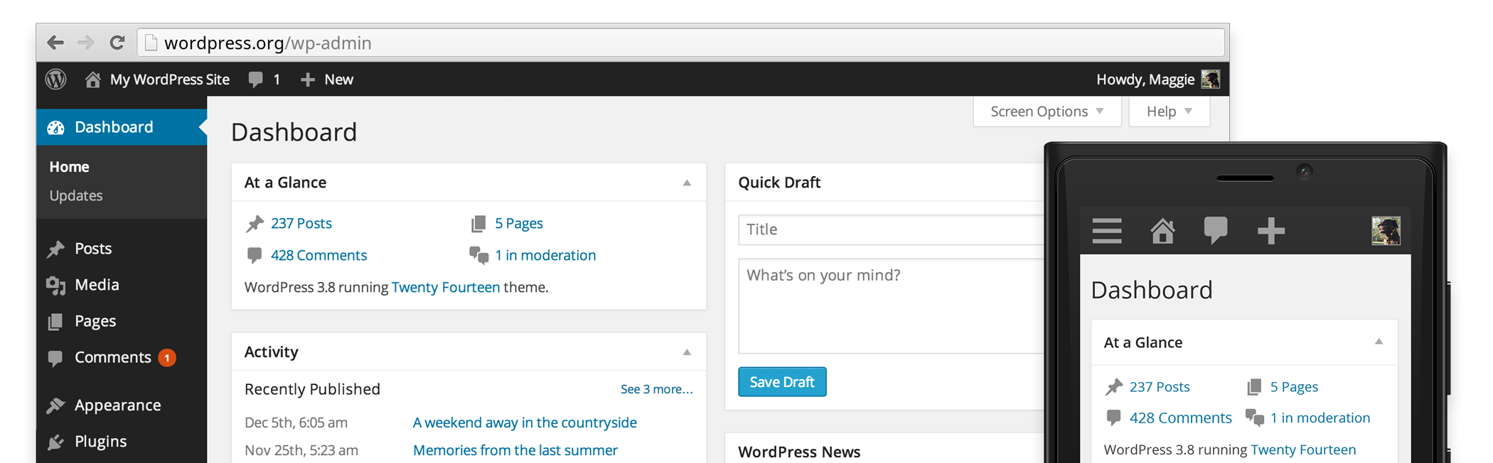 A felhasználók a legkülönfélébb módon csatlakoznak az internetre: okos telefonnal, tablettel, notebookkal vagy asztali számítógéppel. Teljesen mindegy, hogy mit használunk, a WordPress bármihez alkalmazkodik, és otthonosan érezzük vele magunkat bármilyen eszközön is dolgozunk.