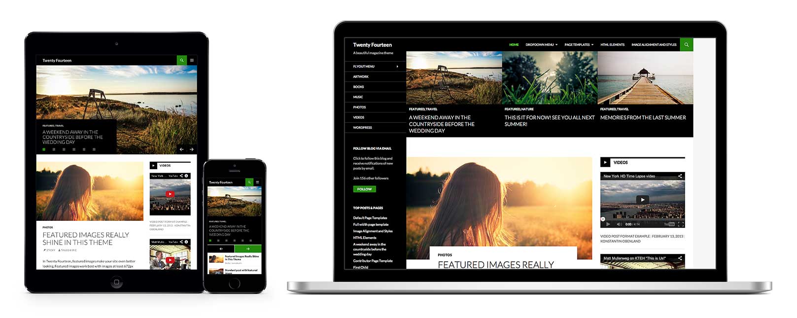 Hozzunk létre egy csodálatos magazin stílusú honlapot a WordPress-szel, és a Twenty Fourteen sablonnal. Válasszunk a honlapunk kezdőlapján, a kiemelt tartalmaink megjelenítéséhez, rácsos nézetet vagy egy slidert. Használjuk ki a három widget terület adta lehetőséget, vagy a két oldal mintasablon használatával módosítsuk az elrendezést.